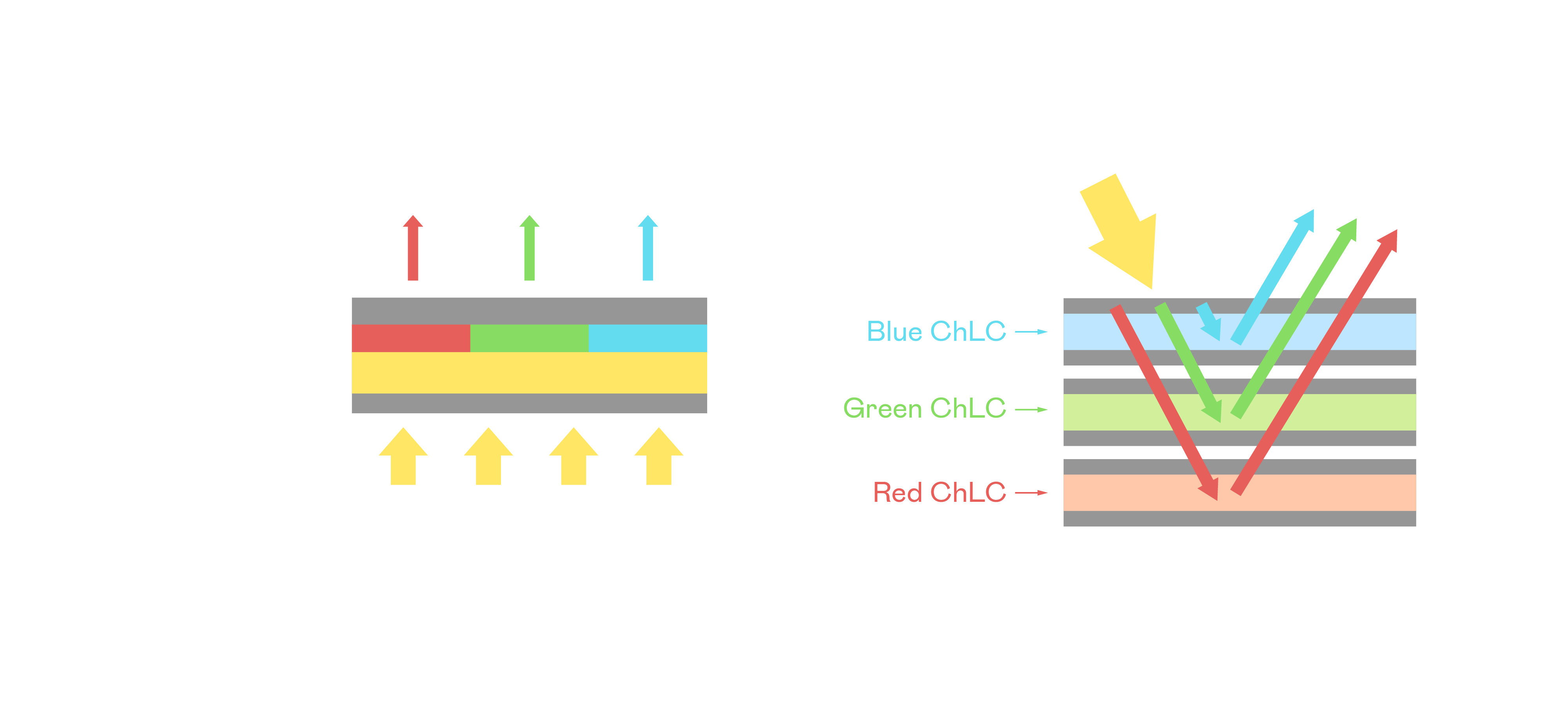 AG体育胆固醇液晶显示器是由红、绿、蓝三层胆固醇液晶面板堆叠而成,并采用无彩色滤光片设计,减少环境光在反射过程中的损耗。